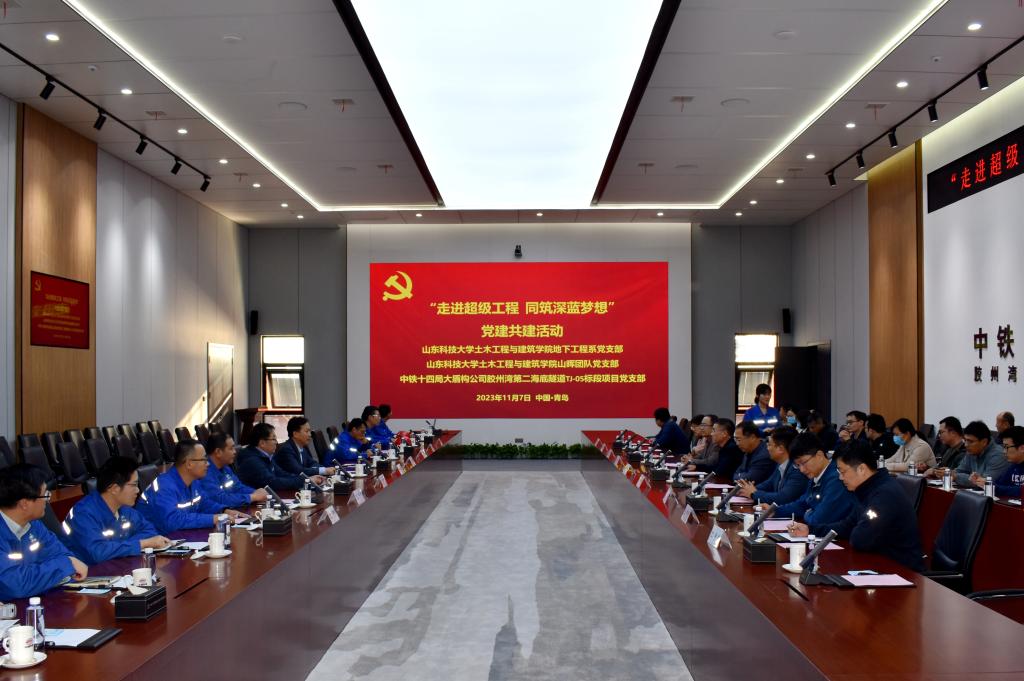 11月7日,公司党委理论学习中心组联合地下工程系党支部与山晖团队党支部一行27人赴胶州湾第二隧道工程现场参观学习。中铁十四局集团有限公司工程管理部部长孙亮、大盾构工程有限公司副总经理路开道、盾构管理中心主任吴玉礼、胶州湾第二海底隧道项目部党支部书记季璐等企业负责人陪同参观并出席座谈交流会。