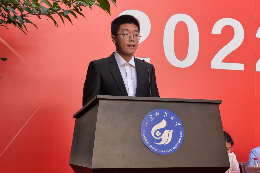 在校生代表、院员工会执行主席徐航送给新生四个词:爱国、责任、坚持、高度,希望新生能在这几个词的指引下学业有成。2022级本科新生杨隆焯、2022级研究生新生李椿萌作为新生代表:表达了对新阶段的期待与决心,表示将与同伴共同扬起理想之帆,踏上学习新征程,在土建热土上挥洒热汗。