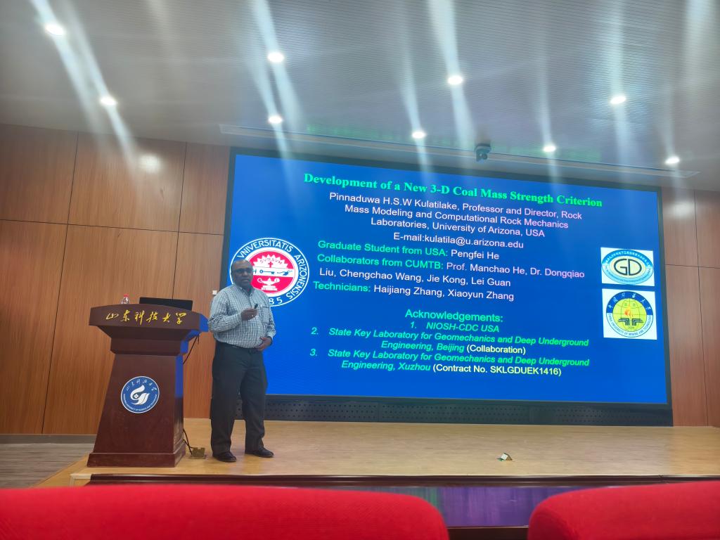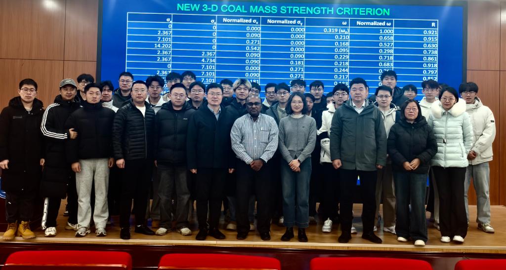 Kulatilake教授作了题为《一种新的三维煤体强度准则的开发》的报告。他从断裂网络量化、多轴试验数值模拟出发,深入讲解了其团队在构建三维煤体强度准则方面的创新理论、计算模型与公式。报告逻辑严密,为理解煤体力学特性及强度预测提供了全新的研究思路与方法,极具理论深度与应用启发性。
