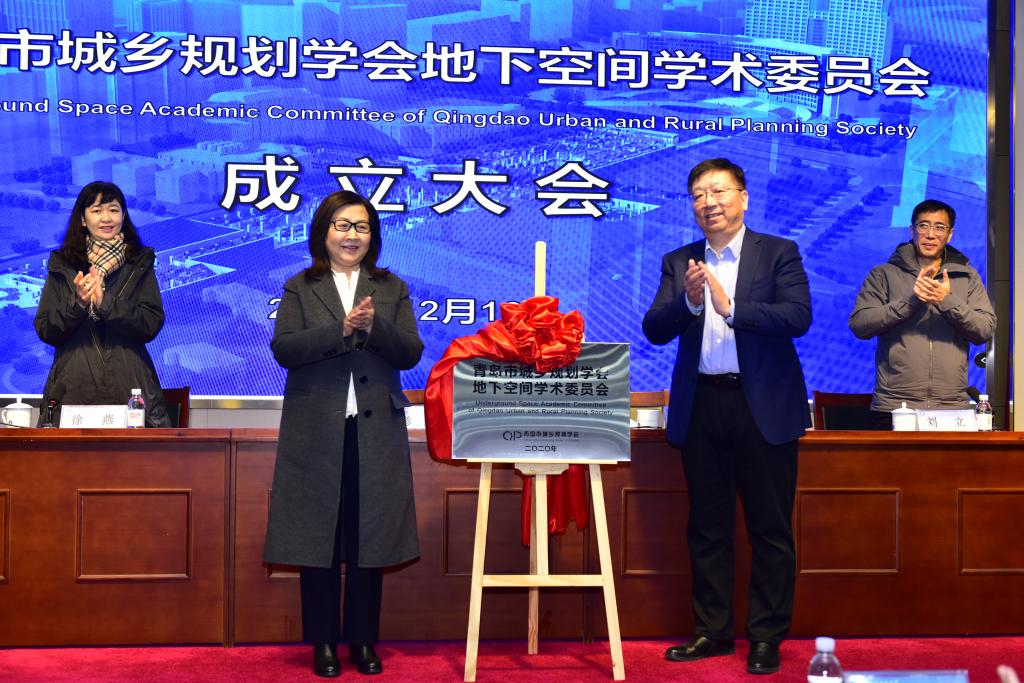 潘丽珍、张英杰为“青岛市城乡规划学会地下空间学术委员会”揭牌