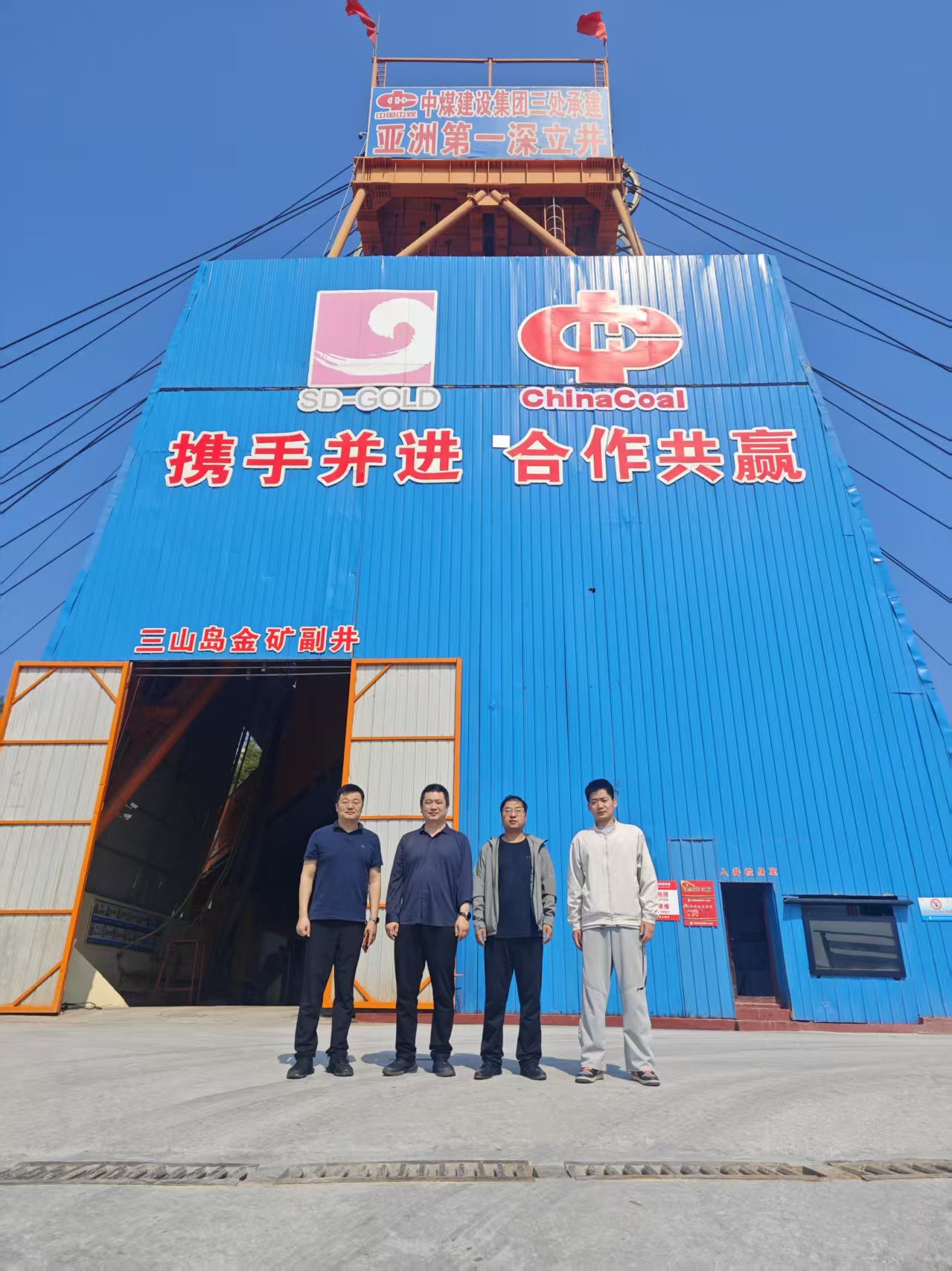 在项目现场,秦哲一行与三山岛金矿总工程师何顺斌、党支部书记李威、工程项目部经理况丹阳等人围绕立井施工中的关键技术难题、深井围岩控制及重大灾害防控等核心议题进行了深入交流。秦哲指出,公司将充分发挥科研与人才优势,持续聚焦深地科学技术研究,为“亚洲第一深立井”的安全高效建设提供坚实支撑。何顺斌总工对公司及山晖团队长期以来的科研支持表示感谢,并重点介绍了超深副井及盲服务井在建设过程中,面对复杂地质、高地温、高地压等世界级挑战所取得的一系列重大技术突破。工程项目部经理况丹阳表示,三山岛金矿将与伟德国际1946持续深化在超深竖井建设与安全运营领域的合作。