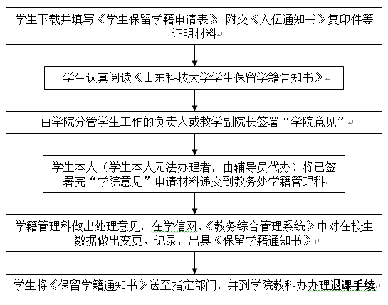 申请校内参加入伍员工的保留学籍手续由国防教育办公室出具名单后统一办理,生源地参军入伍员工本人或委托辅导员办理;为方便员工选课,复学原则上应在每学期前两周提出申请。