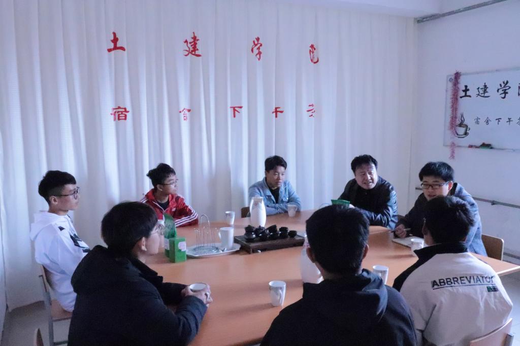 11月21日,土木系副主任林跃忠做客“宿舍下午茶”,团委辅导员刘超陪同,参加本次茶会的还有GB2-102宿舍的6位同学。