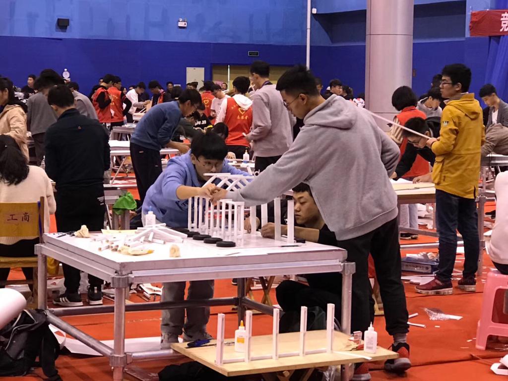 16日上午进行的是老员工模型设计竞赛。随着赛场上老师的一声口令,参赛选手们聚精会神,投入到高度紧张的模型制作中。模型限时5小时内完成,高强度的制作使得选手面临精神和身体的双重挑战。公司队伍顶住了压力,在规定时间内完成了模型制作,并顺利通过模型的称重和净空检查。经过模型加载公司两支队伍分别以满载、160kg加载成功,在九十多所高校中脱颖而出,均获得比赛三等奖。