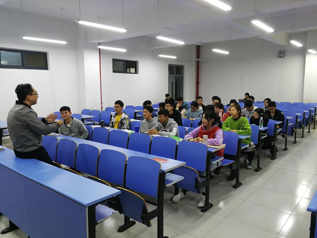 此次班会以答疑的形式为主,共有12位同学提出自己的困惑。郝亮就同学们关于人生、学习、就业、考研等方面提出的问题,结合自身经历,进行了细致的解答。针对同学们提问最多的对于考研和就业的疑惑,郝亮从公司的培养方案入手,分析了就业岗位的情况,帮助同学们清楚了解当前的就业与考研形势,鼓励同学们根据自己的实际情况和实际需求进行取舍,选择适合自己的道路。