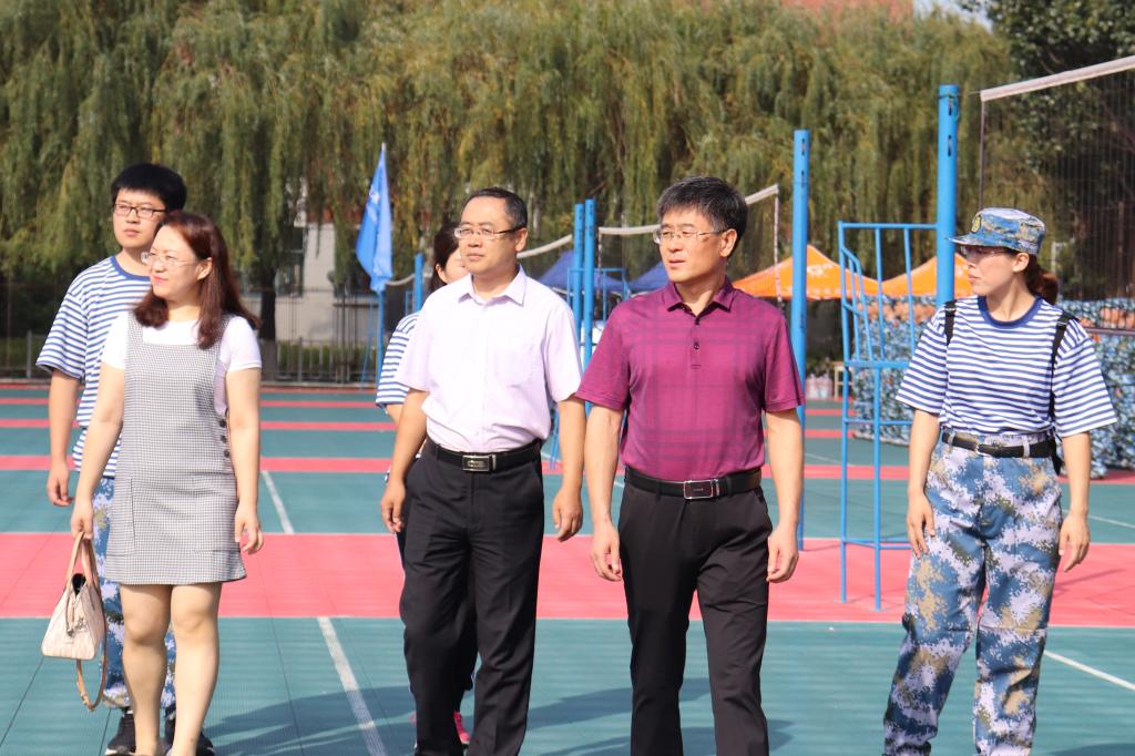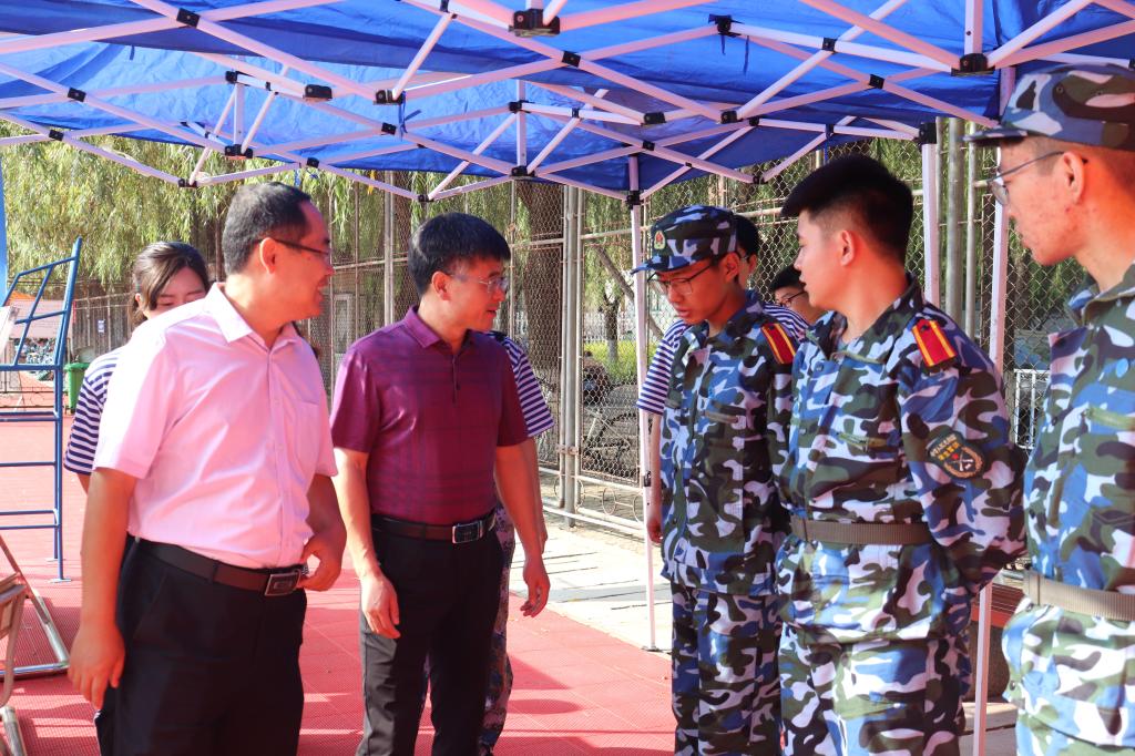 上午,公司党委副书记(主持工作)宋西路、经理王崇革在团委书记于娜及19级辅导员的陪同下前往训练场地,对新生军训的情况进行了详细了解和指导,对在场工作人员进行了慰问,对因伤无法参训的同学们表示关心,对军训场地布置和宣传工作进行了视察。公司领导还进入训练场地,驻足观看员工们的训练情况,与各位教官进行了交流,对他们的耐心指导和辛苦付出表示了感谢。