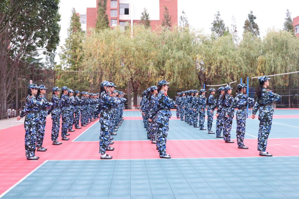 9月3日,2019级新生迎来军训的第二天。操场旁,球场中,旗帜边,方阵间,迷彩风度、青春风范完美彰显。