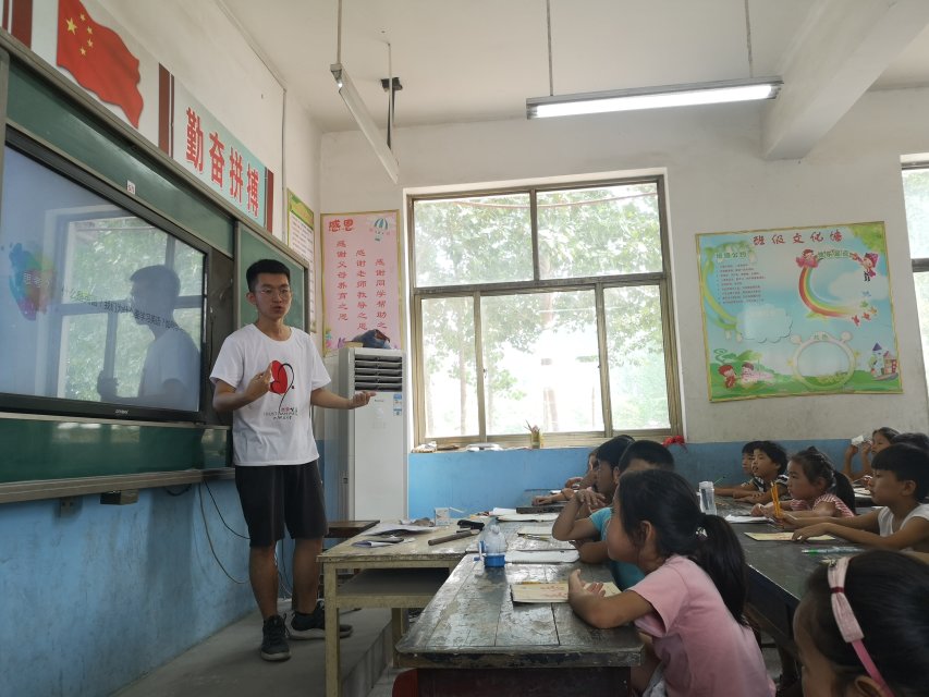 7月22日,支教正式开始。十五天的时间里,队员们以为孩子们拓宽视野、丰富其暑假生活为原则,在开设语数英基础课程外,舞蹈课、安全教育、中华传统文化赏析、折纸课、武术课、交通标志课、我的方形设想等特色课也被增设入日常课程。针对孩子们普遍自信心弱、不敢大声回答问题的现象,队员们新增课程朗诵课,孩子们不仅学到了朗诵的基本要领,而且大胆地走向讲台,说出心中的梦想。为了更深入地了解孩子们的生活和学习情况,队员们对班里的部分孩子进行了家访,针对孩子的实际情况,开始对孩子进行一对一的引导和帮助,同时,向家长们就孩子学习和生活方面提出了合理的建议。