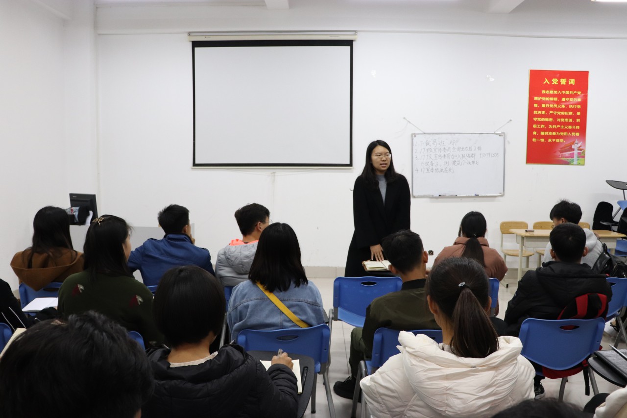 首先,张翌向大家宣布土建易班被评为“山科优秀易班工作站”的好消息,肯定了过去一年同学们的付出与努力。同时,她也跟大家强调了公司公司对于易班的高度重视,指出了土建易班目前存在的一些问题。张翌针对本学年的易班建设提出了四点要求:定时开展例会进行交流及工作反馈、每班举办一个特色活动、定期推出班级特色推文、以及积极鼓励同学使用易班。随后,毛乾行对易班网薪兑换、投票、易喵喵等功能做了详细介绍,并让大家打开易班亲自操作。最后,栾学昊向大家介绍了公司公司对于班级、个人参与易班的激励政策,由此鼓励大家积极参与到易班建设中。