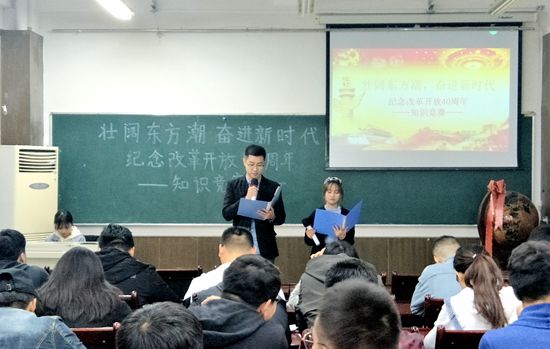 壮阔东方潮,奋进新时代。为更好地引导同学们学习、了解改革开放这一伟大壮举,弘扬改革开放精神,增强同学们在实现中华民族伟大复兴进程中的责任感和使命感,伟德国际1946团委、研究生会于10月23日晚在公司楼会议室举办了主题为“壮阔东方潮,奋进新时代”庆祝改革开放40周年知识竞赛活动。