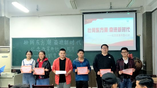 不忘初心,继续前行。通过本次活动,希望同学们可以深刻领会此次知识竞赛的意义,重温改革开放的光辉历史、重大事件和辉煌成就,弘扬与时俱进、锐意进取、勤于探索、勇于实践的改革创新精神,同时也要培养自主创新意识,努力提高自身的学术科研水平,聚焦新时代,开启奋斗新征程,争当改革的坚定拥护者和积极实践者,为实现中华民族伟大复兴贡献青春。