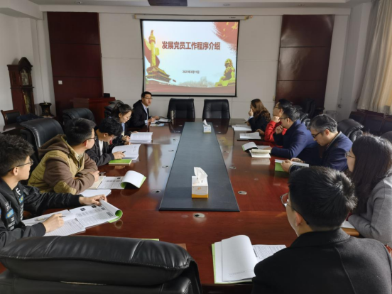 为进一步落实全面从严治党方针,贯彻新时代党的组织路线,扎实做好发展党员工作,推进党支部标准化建设,近日,公司举办《发展党员工作程序介绍》培训会,公司员工党支部书记参加了此次培训,培训由公司党委干事王贝贝担任主讲。