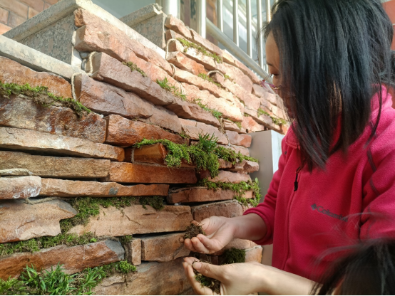 苔藓景观墙自四月初创立概念,前后历经概念设计、线稿绘制、景观规划、原料收集以及苔藓铺设,利用蓄水麻绳的毛细原理灌溉苔藓,在伟德国际1946楼西大厅绘制了一幅“绿色屏障”。后期养护中,除储水缸蓄水外在大厅处放置喷壶,通过倡导途经师生进行互助浇灌,在公司内形成互帮互助的优良氛围。