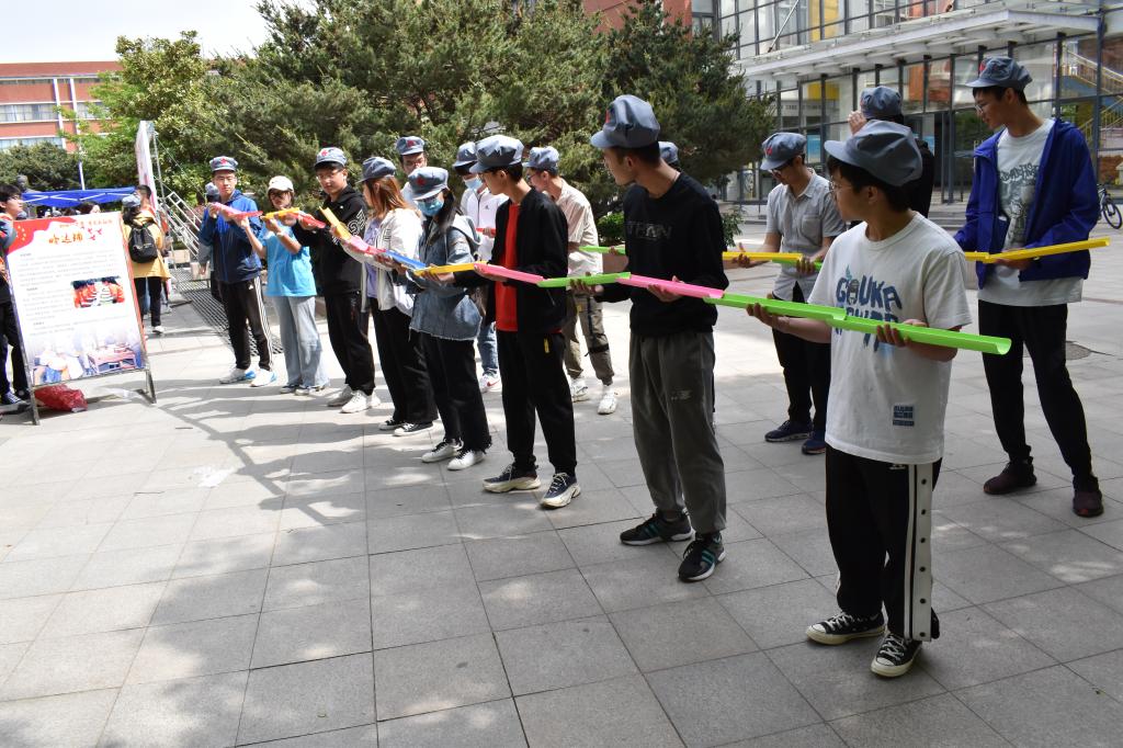 活动开始前,员工处心理健康中心乔杨老师致开幕词,她强调,长征精神是革命先辈为后人留下的最宝贵的精神财富,是中华民族百折不挠、自强不息的民族精神的最高体现,希望同学们不忘初心,继承和发扬伟大的长征精神,争做德智体美劳全面发展的中国特色社会主义事业建设者和可靠接班人。本次活动模拟了红军长征路上不同的“关卡”,按照预先创设的长征路线:从瑞金出发——爬雪山(负重跑步)——过草地(九人十足)——激战腊子口(精准射击)——哈达铺运送物资(乒乓球接力传递)——陕北吴起会师,进行一一体验。每参加完一个活动会获得一枚红色胜利胸章,集齐所有活动章可换取长征胜利奖牌。