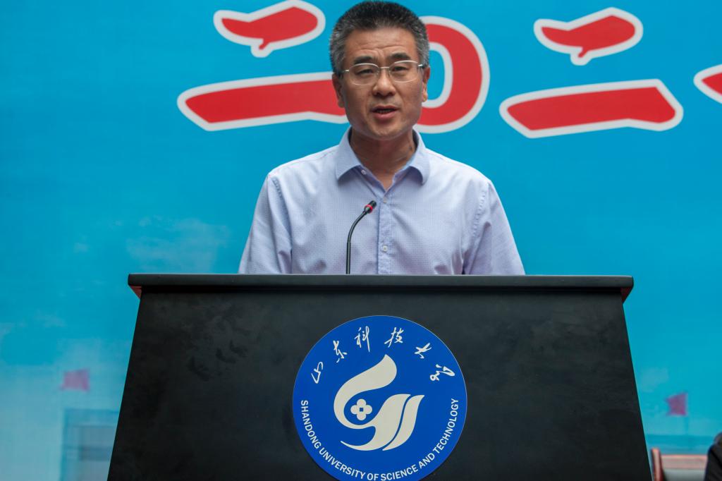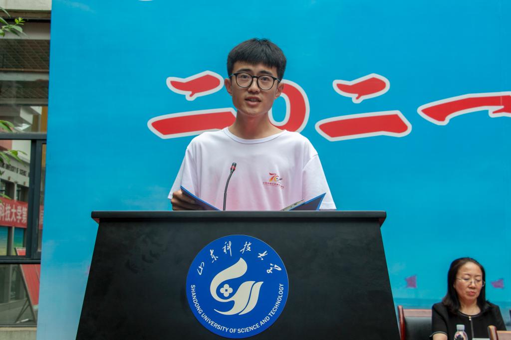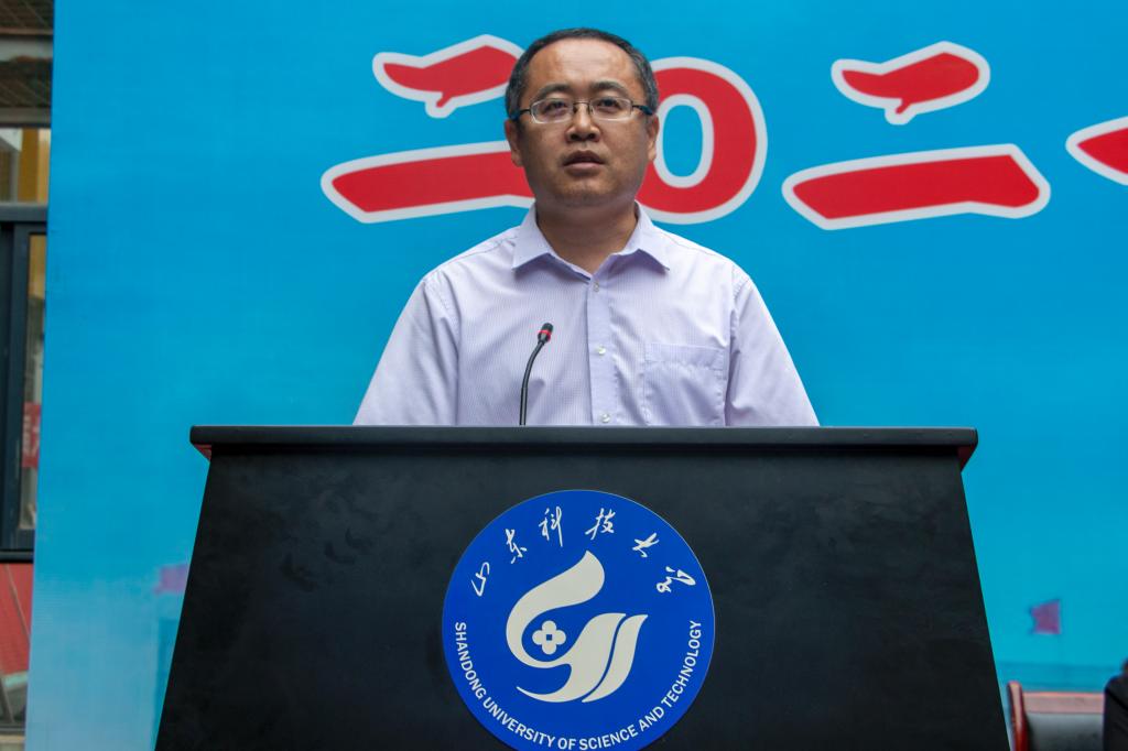公司教师代表、青岛高校教学名师孙跃东讲话。他表示,作为老师能够陪伴同学们一起学习、生活和成长非常荣幸,看到同学们学业有成倍感欣慰,并表达了对同学们的希冀。希望同学们牢记“惟真求新”的科大校训,发扬“诚实、勤学、吃苦、耐劳”的精神,踏踏实实做人,勤勤恳恳做事,不断提高专业素养,逐步实现个人价值。