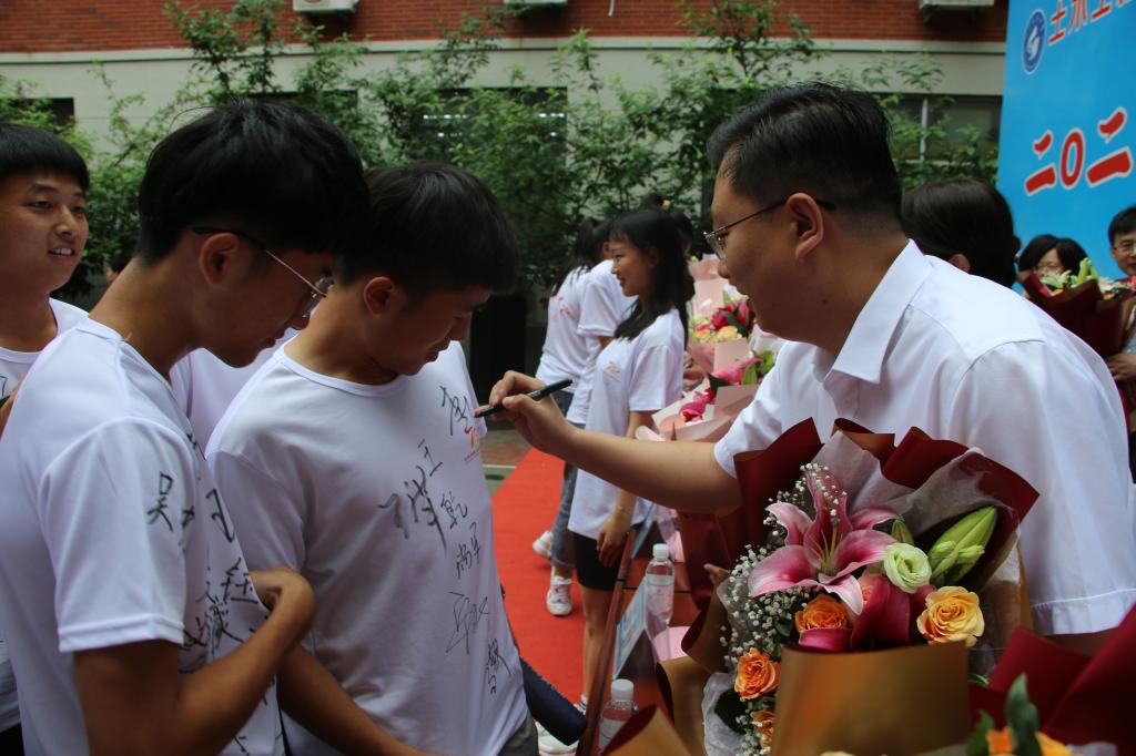 最后,王崇革经理致辞。他向毕业生们圆满完成学业表示衷心的祝贺,向一路呵护同学们成才的老师们表示最崇高的敬意。临行之际,他赠言毕业生:一、远望有群山,既然锁定了目标,就要栉风沐雨,一往无前,志存高远,奋发图强;二、心中有片海,那时我们可以包容一切的浩瀚,坚实的港湾可以抵御惊涛骇浪;三、行动如疾风,用青春活力激发时不我待、只争朝夕的热血和豪情;四、静思苦与乐,得意之时不忘形,失意之时莫忘志,担当大任之人,必将饱经风霜,方能彰显社会担当;五、常怀感恩之心,兼容包并。