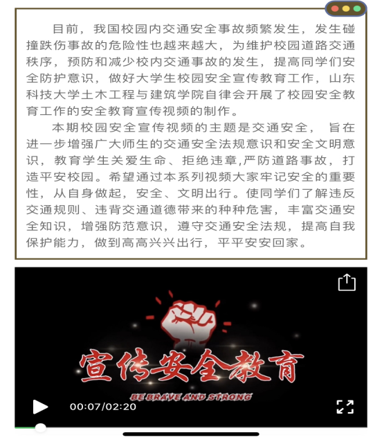 自2021年3月至6月,伟德国际1946自律会先后推出了以校园防火、预防电信诈骗、预防疟疾、交通安全、食品安全、意外事故处理和防溺水为主题的十三期校园安全教育视频。视频的主题涵盖内容广泛,深入员工生活,结合员工创意编排演绎,以喜闻乐见的形式、通俗易懂的方式向员工普及了安全知识、增强了安全意识。伟德国际1946自律会以视频为媒介,协同伟德国际1946新闻宣传中心,在“山科大土建之家”微信公众号与“山科大伟德国际1946自律会”QQ公众号上向员工宣讲校园安全隐患及处理措施的知识,传播范围广、力度大,完善了校园安全体系,降低了校园安全事故发生的可能性。