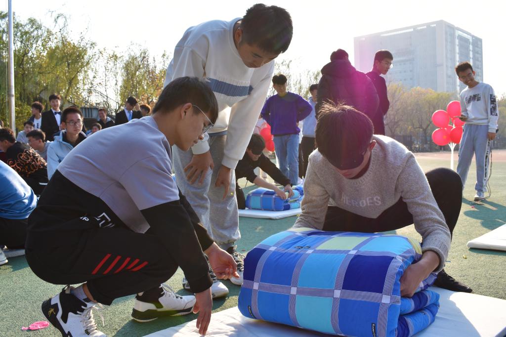 叠军被比赛是宿舍文化月活动的第一个比赛项目,此次叠军被比赛包括四个环节:气球大爆炸、占领阵地、叠叠不休、踩踩叠叠。为增加观众的参与感与积极度,比赛过程插入了中场游戏环节,亲友团参与游戏,游戏获奖者可为本队伍进行额度加分。随后,第三、四轮比赛依次进行,比赛仍以叠军被为中心,但在叠军被前增加了趣味环节,各个环节都极大的激发了同学们的积极性与参与感。每轮比赛结束评委进行一轮打分,最终名次以三次总分为标准,由各位嘉宾对获奖队伍进行颁奖。经过三轮激烈比拼,获得一等奖的是建筑学21-3班,获得二等奖的是土木类21-5班、建筑学21-1班,获得三等奖的是土木类21-6班、土木类21-11班、土木类21-7班。