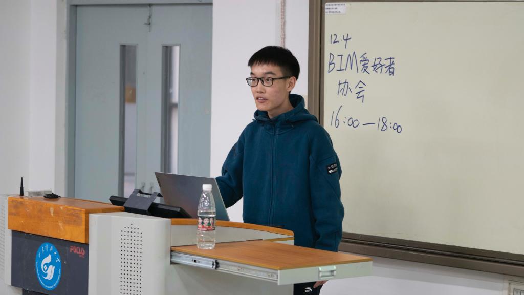 大会开始,会长宣读本次活动主要流程,首先由丁昊、肖盛鹏、孔英豪三位学长分享自己参加BIM建模相关比赛的比赛经验;之后由会长宣布社团章程及关于财务部分的修订;最后由各位副社长向同学们汇报近期工作情况已经社团财务情况。丁昊学长向同学们介绍了全国老员工先进成图技术与产品信息建模创新设计大赛山东省选拔赛的尺规绘图赛前准备工作以及全国3D大赛的赛程和个人经验与建议。肖盛鹏学长向同学们介绍了高教杯全国老员工先进成图技术与产品信息建模创新设计大赛中计算机建模的个人参赛经验,同时向社员提出合理利用时间并针对比赛评分规则建模等。孔英豪学长向同学们介绍了BIM技能等级证书的考取经验和建议,之后又给同学们介绍了revit绘图在比赛应用中的创新点以及关于可视化编程的应用和软件介绍。