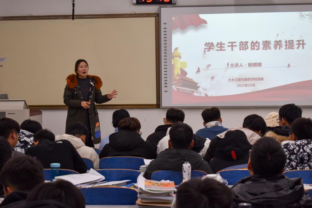 在本次培训会中,鲍娜娜从五个方面对团支部委员提出要求:一是争做新时代的青年,二是团支部委员的角色定位,三是团支部委员的能力素养,四是团支部委员的工作方法,五是团支部委员的工作艺术。鲍娜娜通过对这五个方面的详细阐述,号召团支部委员积极配合公司联系我们,树立为同学服务的意识,不断提高自身思想政治素质。