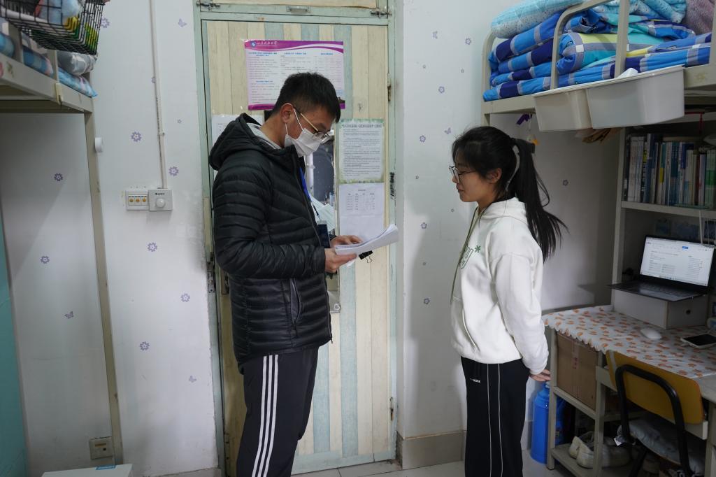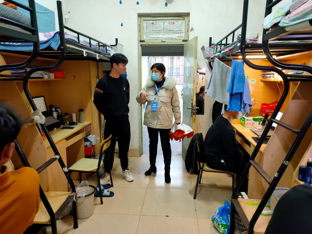 层长每天通过“早中晚一日三巡”的方式,检查所负责楼层宿舍是否存在违禁电器、夜不归宿等情况,监督宿舍认真落实“一日三检两报告”制度和“突发问题秒报告”制度,督促做好宿舍通风消杀、垃圾第一时间下楼等各项疫情防控要求,提醒宿舍成员按时起床、按时上网课。