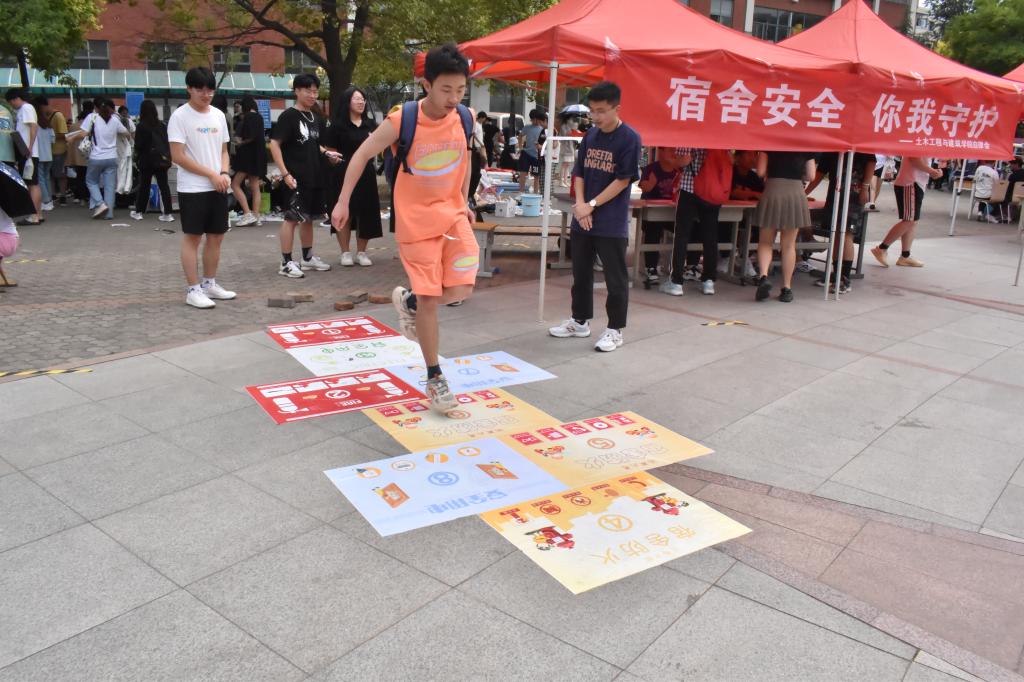 本次活动寓教于乐,以“跳房子”游戏为载体,吸引了广老员工的积极参与。参与活动的员工跳到石子投入的格子后折返,然后根据格子对应数字寻找工作人员进行相应的安全知识问答、安全知识了解或灭火器使用演示观看。活动过程中,志愿者还通过发放宣传页、填写问卷调查等形式,结合校园火灾典型案例,采用通俗易懂的语言,为员工重点讲解了宿舍常见火灾隐患,宿舍楼火灾逃生技巧以及报警注意事项等消防安全常识,并就同学们提出的消防安全隐患整治以及责任制落实和制度建设等各种有关宿舍安全的问题进行了耐心细致的解答,取得了良好的宣传教育效果。安全无小事,生命至上,同学们表示,将共同维护宿舍安全,学习宿舍消防安全知识,做生命的守护者。