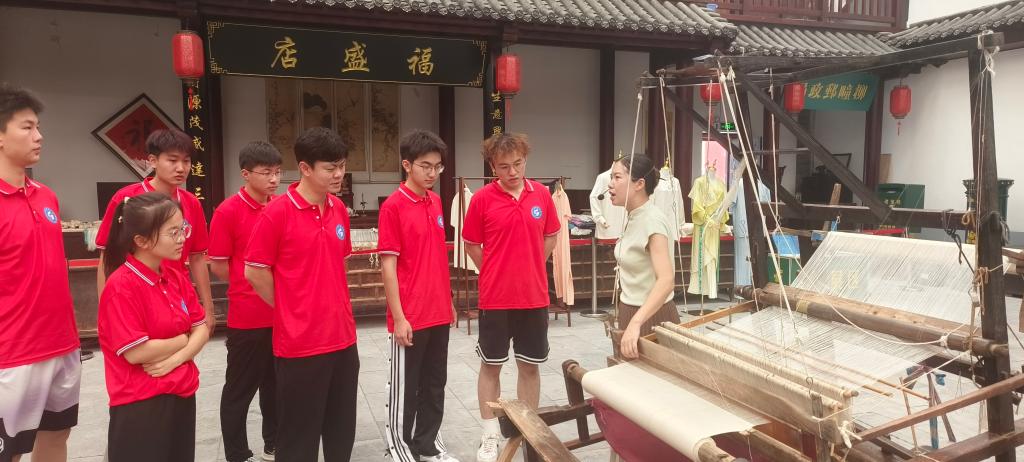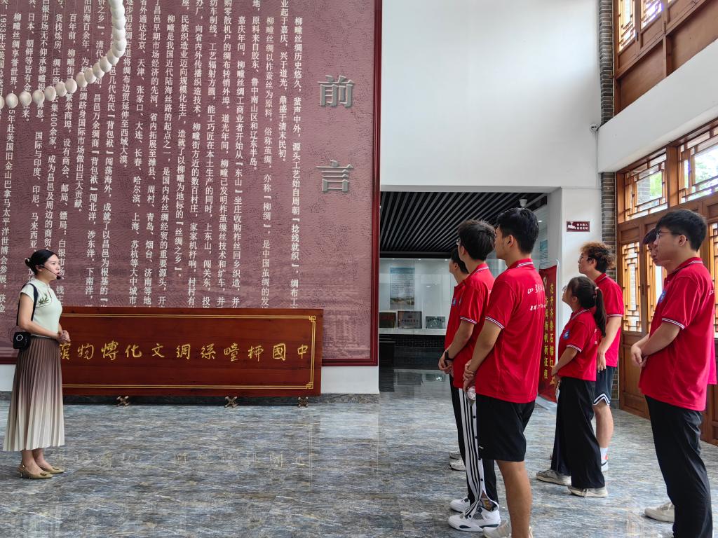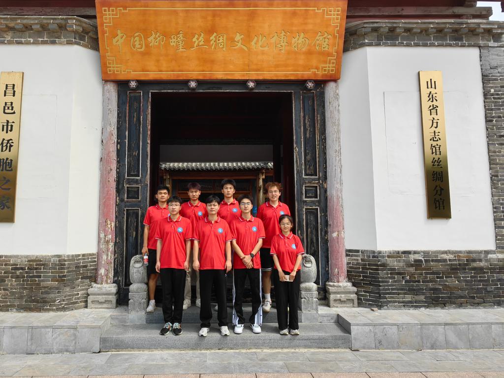 8月9日,实践团队先后来到丝绸文化博物馆、潍坊侨史馆参观学习。团队成员在讲解员的带领下参观了柳疃历史厅、《红楼梦》厅、丝绸工艺厅、繁荣的柳疃街厅、丝绸之路厅、红色渤海走廊厅、柳疃丝绸文化厅、昌邑民俗厅等10个展厅,参观了纺车、纩车等生产机具,柳疃丝绸生产、销售所用的账本、印章、商号牌匾等3万余件文物实物,柳疃丝绸技艺传承人现场进行了丝绸原始生产全过程操作演示,直观感受到了柳疃丝绸历史文化的深厚底蕴。
