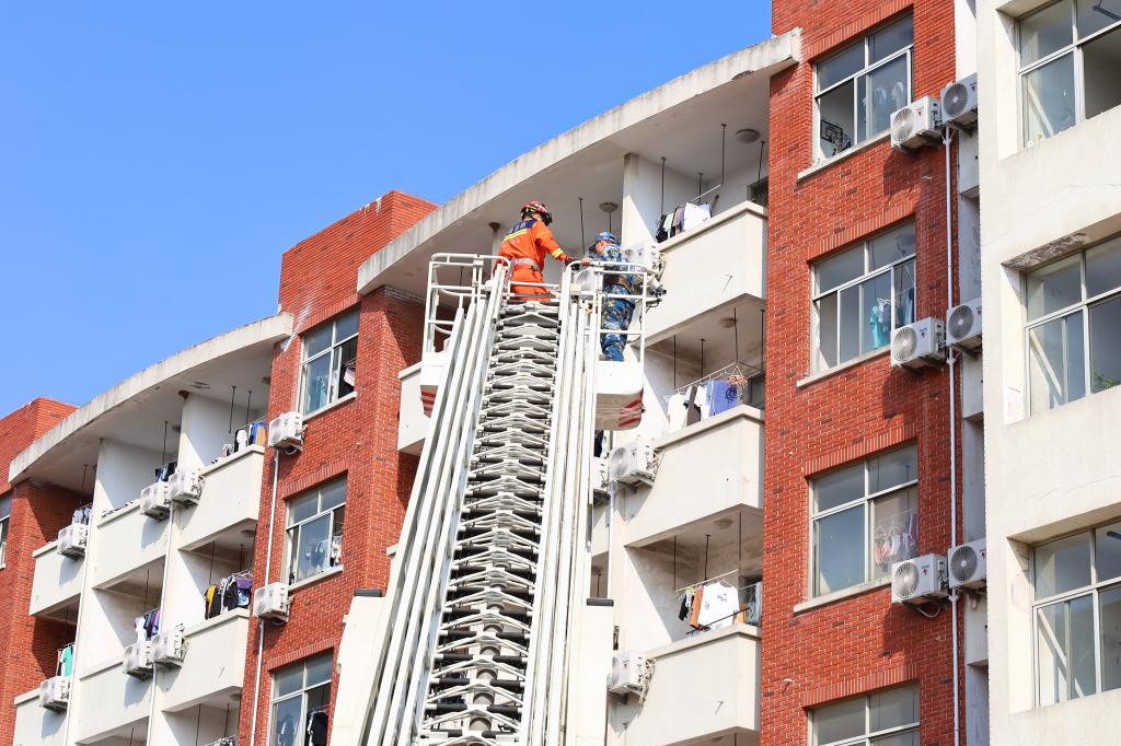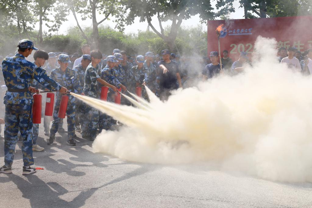 随后,开发区消防救援大队进行了现场灭火实战和培训,向新生们介绍了遇到火灾如何报警、常见灭火器的使用等基本消防知识。最后,消防队员还演练了云梯救人等环节,并提醒各位同学遇到火灾要冷静逃生、正确报警。