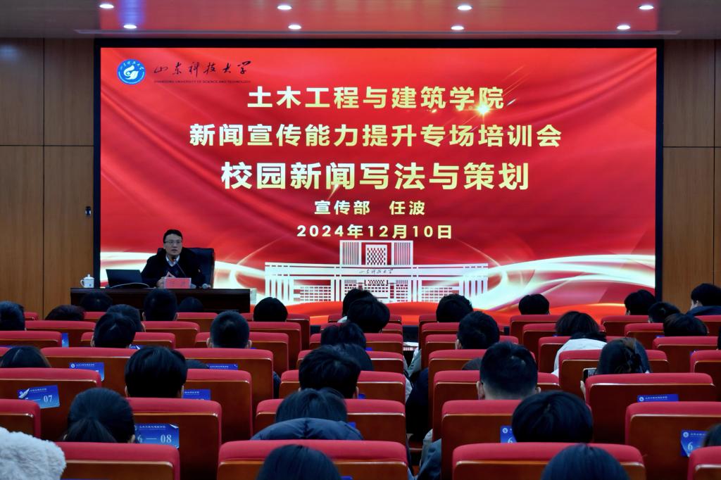 为切实提高公司新闻宣传工作队伍的业务能力,不断提升公司新闻宣传工作的质量和水平,伟德国际1946于12月10日在J15-136报告厅举办新闻宣传能力提升专场培训会。本次培训会邀请到公司党委宣传部任波老师主讲,公司新闻宣传中心成员及各班级宣传委员参加此次培训会,培训会由员工工作办公室主任、团委书记王贝贝主持。