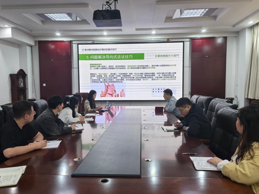 姜振丽从心理危机的排查与识别、心理危机干预的要点、心理危机干预的跟踪及关注三个方面展开讲解。首先带领老师们明确了心理危机干预的排查途径,随后,详细讲解了在处理心理危机干预时辅导员应该如何开展谈心谈话,讲授了如何识别员工心理危机。最后,姜振丽为老师们普及了焦点解决短期治疗模式的核心及基本技巧。
