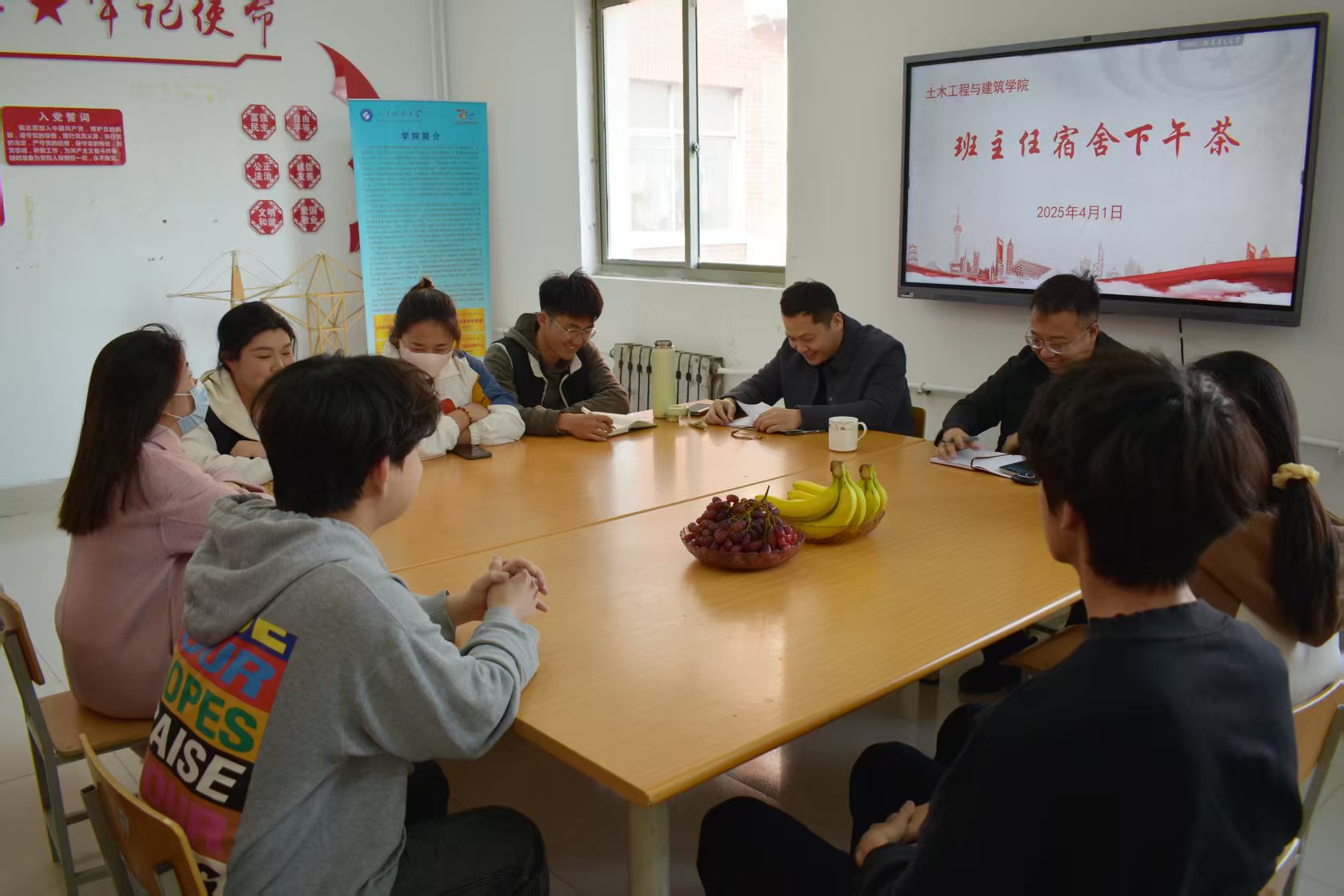 为深入了解员工思想动态,强化“辅导员+班主任+员工干部”的价值引领体系。将价值引导融入思想教育、制度管理和日常的学习、生活和工作中。2025年4月,伟德国际1946于每周二下午四点在GB2宿舍党员之家常态化开展班主任“社区下午茶”活动,通过明确目标、强化管理、树立榜样,激发员工内生动力,推动整体学风持续提升。本次下午茶系列活动邀请到2024级班主任尹诵、韩新宇、刘如梅、王若菡四位老师出席,由团委辅导员老师李沛东主持。活动现场,师生们围坐一堂,在轻松温馨的氛围中,就学习、生活等话题展开了深入且亲切的交流。