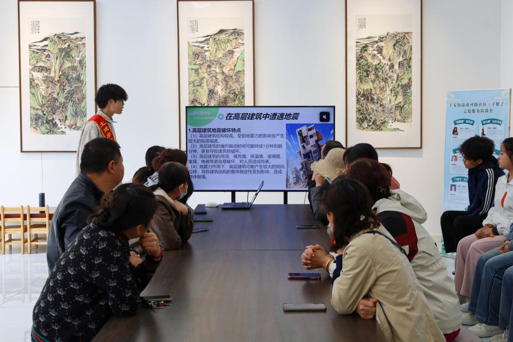 在互动环节,志愿者们还邀请居民们参与模拟地震场景的演练并进行了防震减灾知识问答环节,并针对居民们提出的疑问进行了详细解答。现场气氛热烈,居民们纷纷表示受益匪浅。