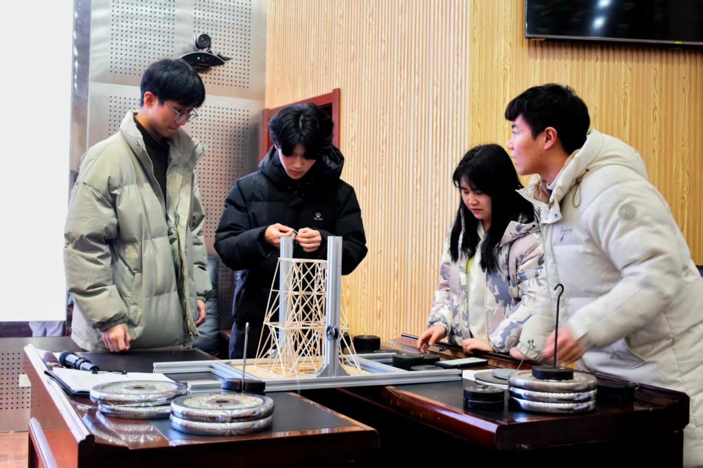 比赛共吸引伟德国际19468支队伍参加。作品涵盖经典桁架创新与智能建造构想等方向。赛程包括方案汇报、答辩展示与加载测试三个环节。在加载测试中,各模型接受专业承重检测,通过荷载数据与变形情况直观验证结构性能。最终,“逐梦匠星队”凭借优化的空间桁架与交叉斜撑结构荣获一等奖,“魔力无限队”获二等奖,“痴心绝队”“建模实践小组”“星际航队”获三等奖。
