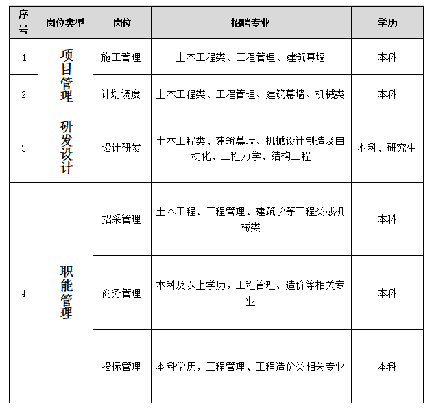 二、 招聘岗位