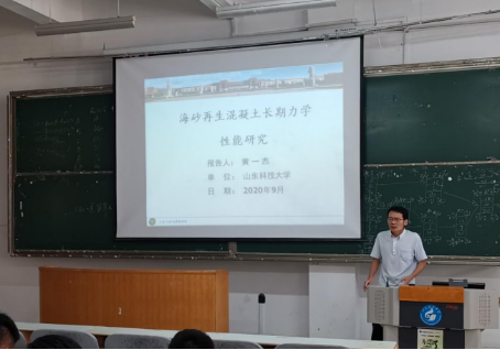 9月1日,伟德国际1946博士生导师黄一杰副教授做了题为“新型海洋材料混凝土性能”的报告。报告中,黄一杰介绍了“海洋强国”战略背景下土木工程材料涉海的新方向和新趋势,并结合自身的研究成果,介绍了“海砂再生混凝土”和“海砂珊瑚混凝土”两种新材料的力学性能及应用前景。