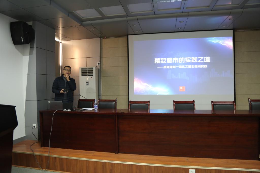 十佳青年规划师、青岛市城市规划设计研究院交通分院经理徐泽洲以《青岛城市与交通发展回顾与展望》为题作了报告,报告从青岛城市与交通的发展历程与成就和发展目标与展望两个大方面展开,徐经理从市域重大交通基础设施布局出发,介绍了青岛城市交通引导城市空间发展的关系,并着重强调了地铁对青岛城市发展的重要性。十佳青年规划师、青岛北洋建筑设计有限公司规划策划部主任、五道中国执行董事王拓以《精致城市的实践之道》为题作了报告,报告以威海市传媒小镇等工程为例,总结出了策划是造势之源,规划是入实之根,产业是赋能之道。随后的互动环节,两位专家与公司师生展开了热烈讨论。
