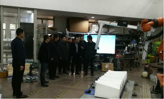 张东、王崇革一行在青岛理工大学建筑公司数字化建造实验室
