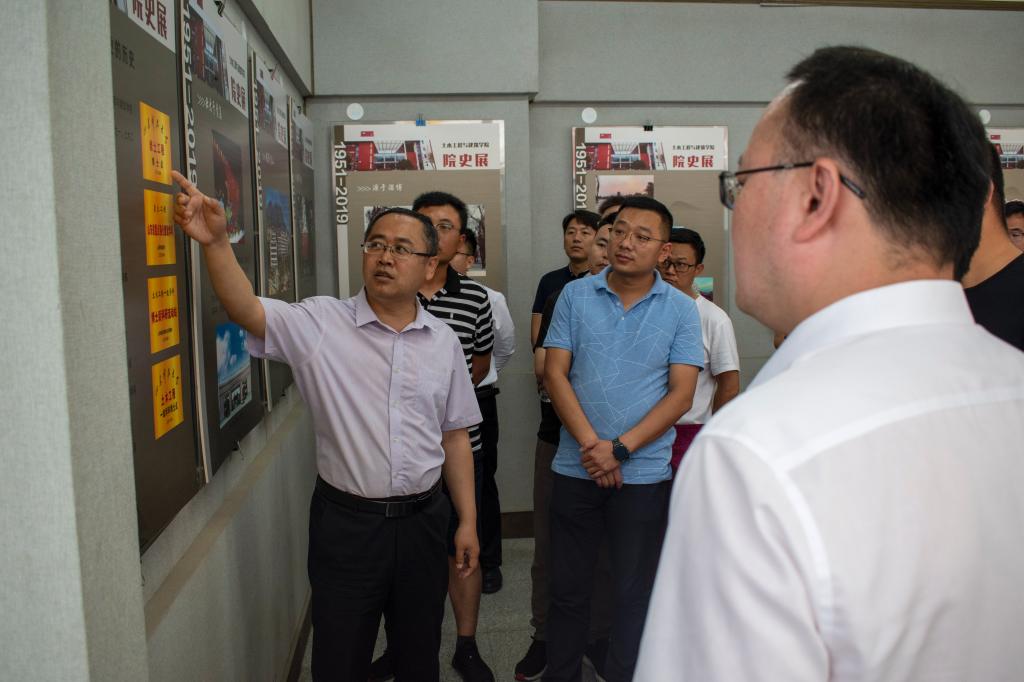 会后,领导老师及员工们于土建楼西门合影留念,王崇革带领员工参观院史馆。